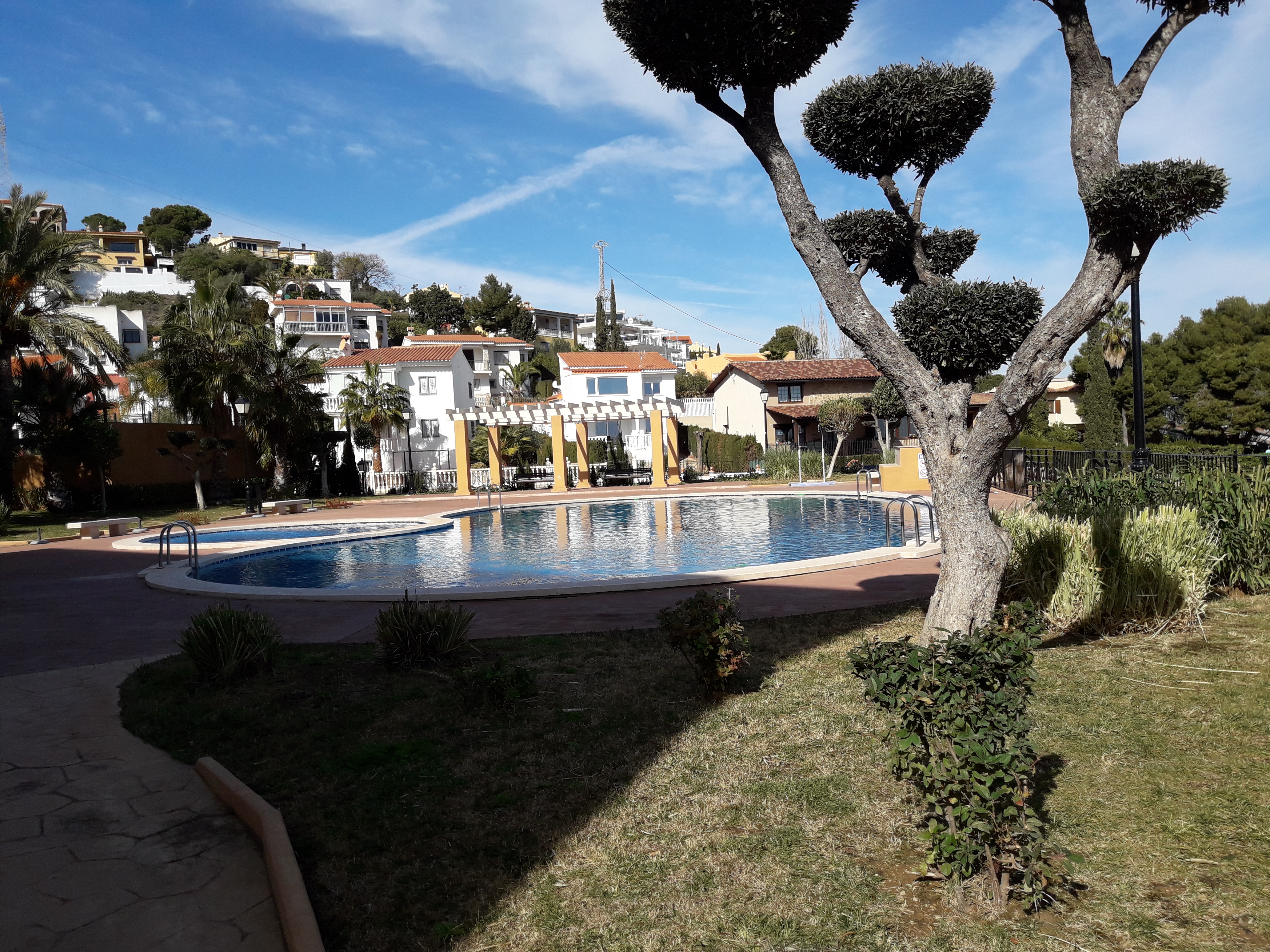 - Gran piscina exterior con zona ajardinada para tomar el sol y pérgola para zona de sombra. (disponible de junio a septiembre)
